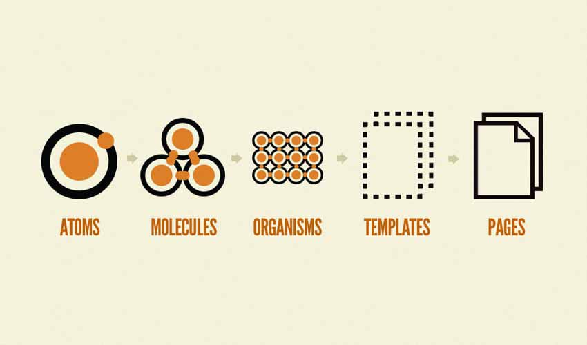 Il y décrit une méthodologie de conception d’interfaces utilisateur basée sur cinq niveaux de composants : les atomes, les molécules, les organismes, les templates et les pages.